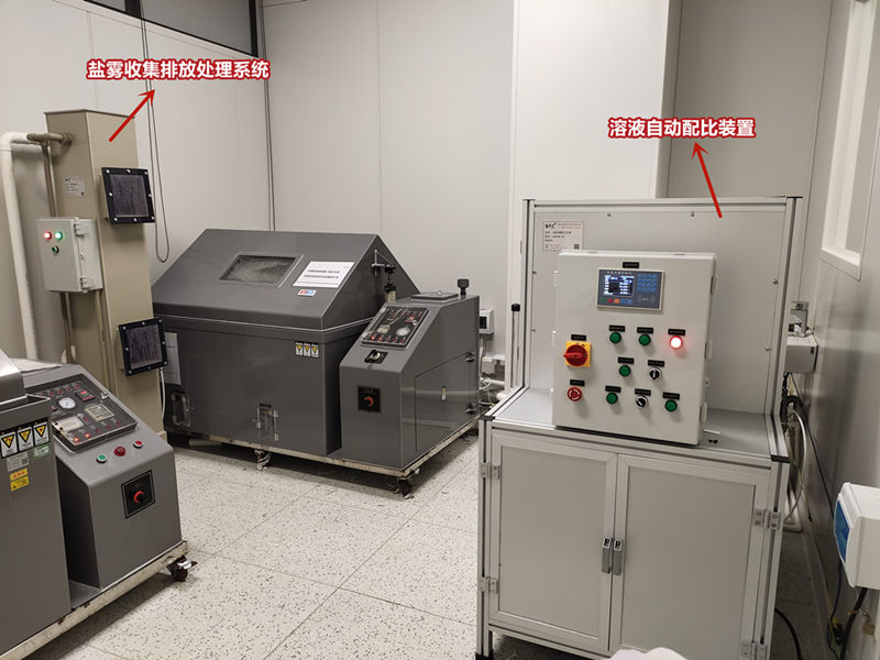 在實驗室中,合理配置鹽霧試驗箱,溶液配比裝置,鹽霧收集..