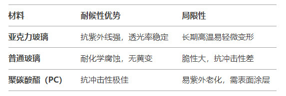 四、亞克力與其他材料的耐候性對比